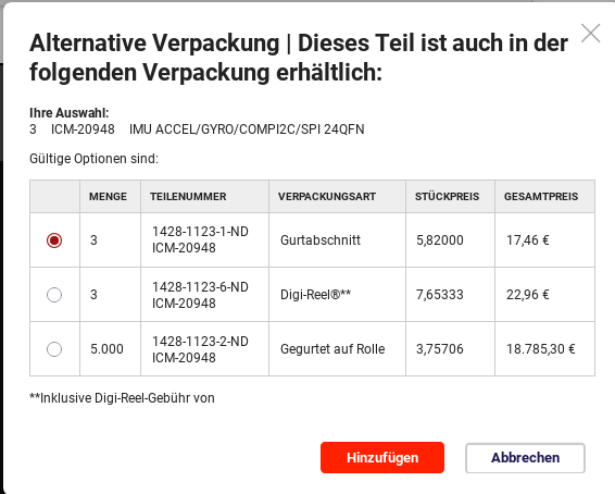 Thanks #Digikey. I know you're optimistic about my projects, but let's talk about 5000 units after I manage to make use of the 3 I originally wanted to buy.