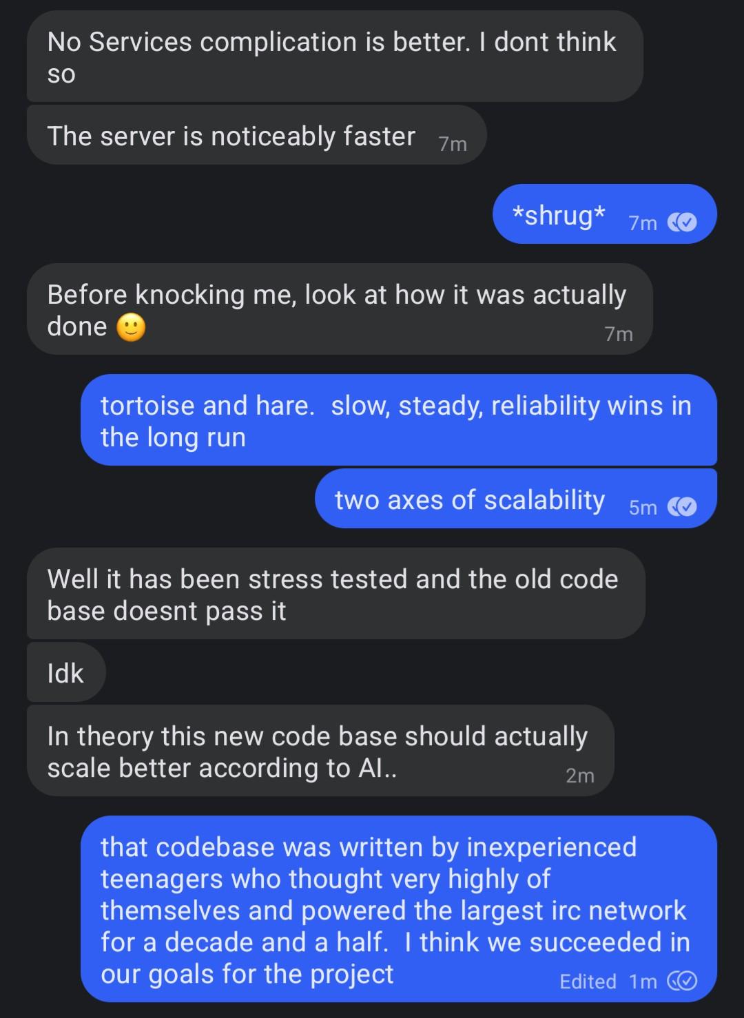 somebody is giving me a play by play of their vibe code refactoring of Charybdis (the ircd family that powered freenode for 16 years)