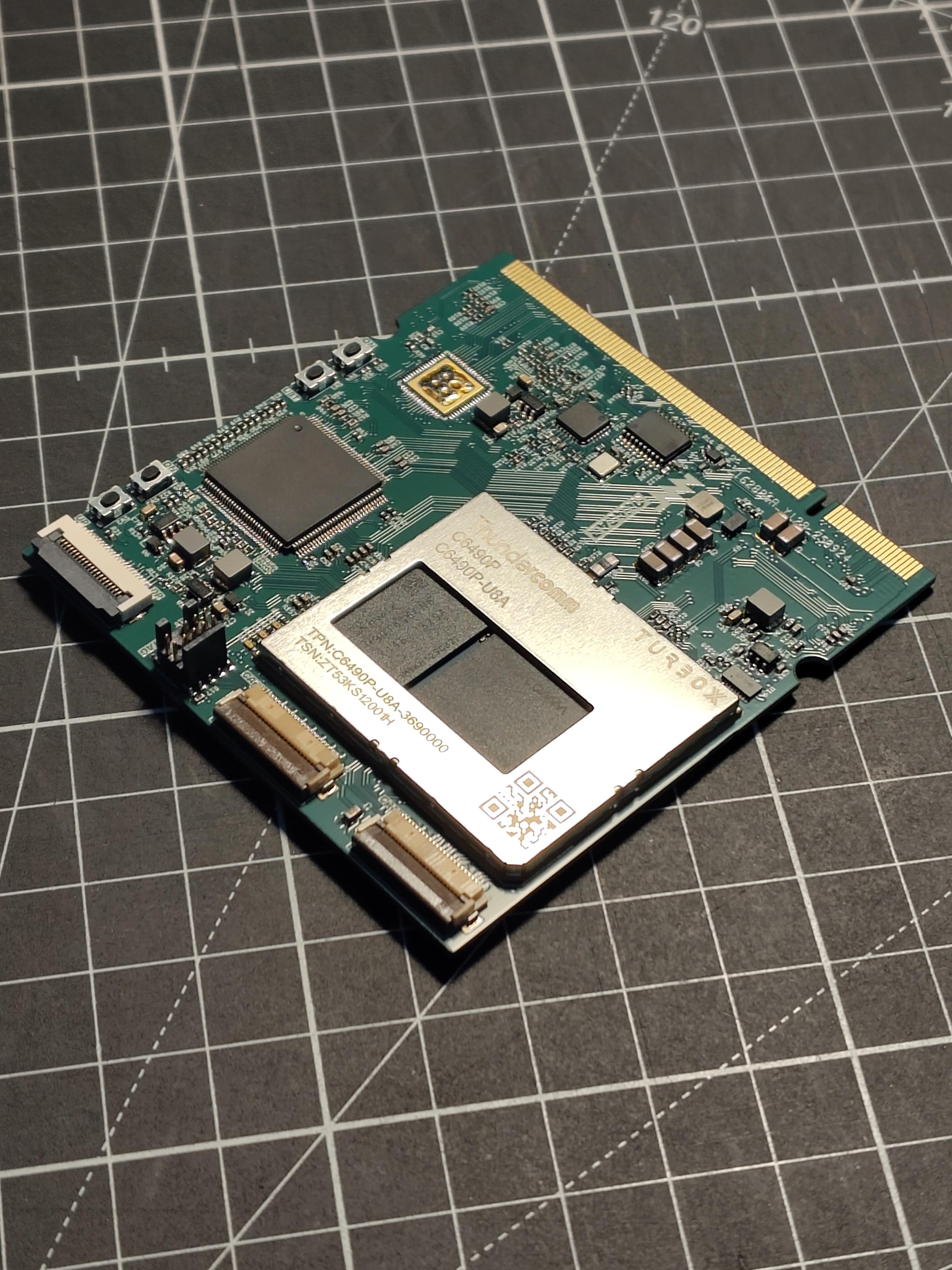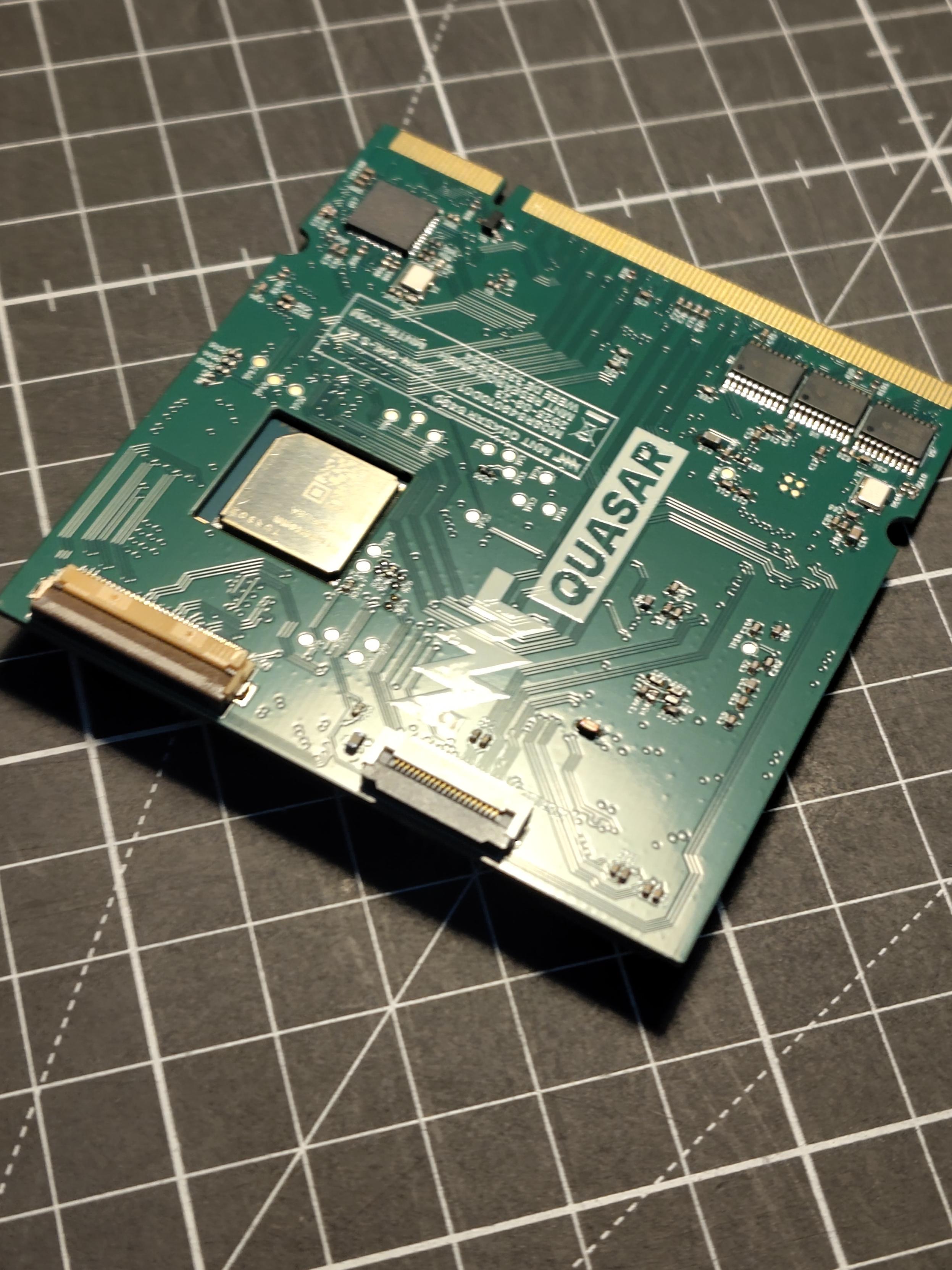 it's real: first MNT Quasar processor module prototype, assembled today by @theawesomerandomness! this will allow the usage of qualcomm qcs6490 and hopefully two other pin compatibles in current and future MNT open hardware laptops/computers.