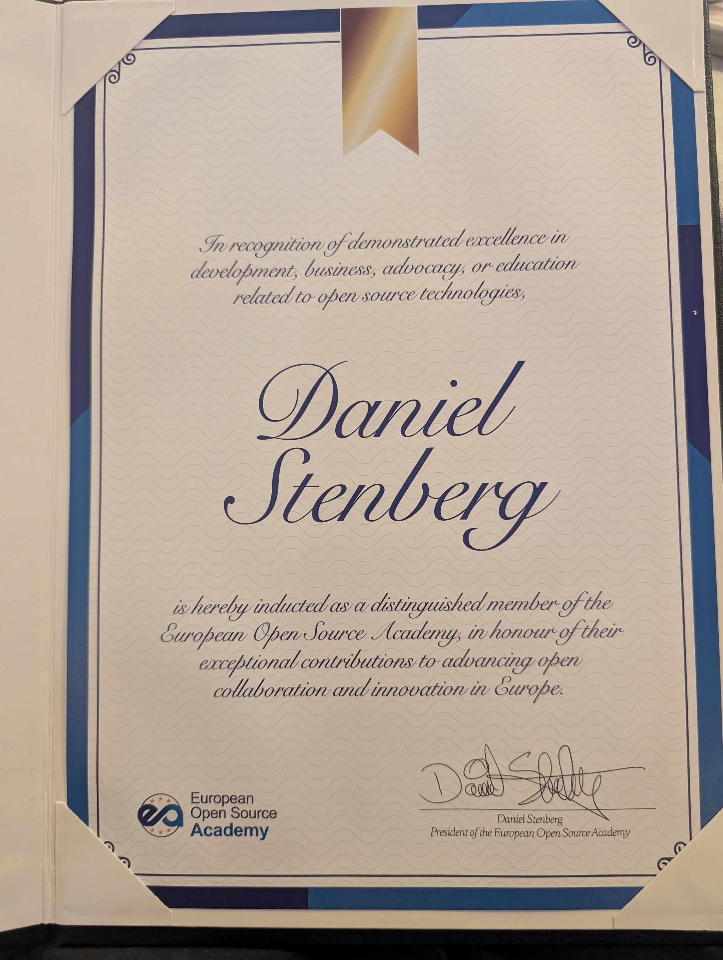 Happy to invite myself to the European Open Source Academy (I received the formal certificate today, which turns out is signed... by me)